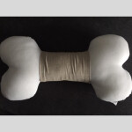 2-piece set. Canvas dog bone shaped pillow arrives with natural linen wrap that can be personalized with embroidery. Wrap secures with hook and loop.